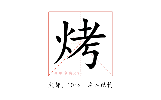 纠错〔烤〕字拼音是(kǎo),部首是火部,总笔画是10画。