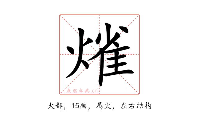 〔熦〕字是左右结构,可拆字为“火、雀”。