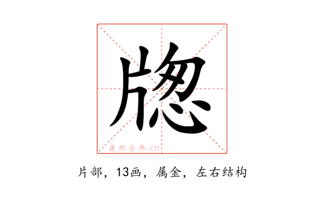 〔牎〕字是左右结构,可拆字为“片、怱”。