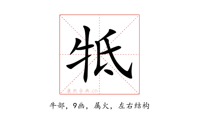 〔牴〕字是左右结构,可拆字为“牛、氐”或“牜、氐”。