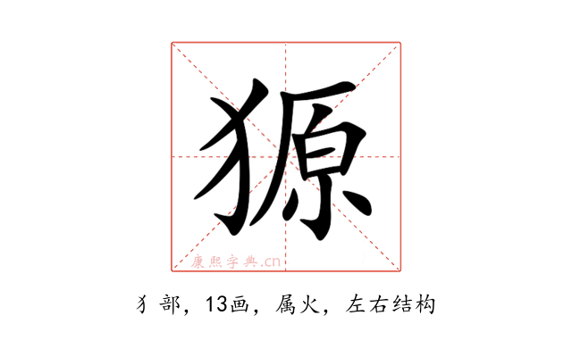 〔獂〕字是左右结构,可拆字为“犭、原”。