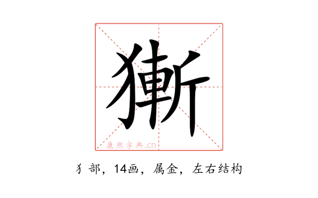 〔獑〕字是左右结构,可拆字为“犭、斬”。