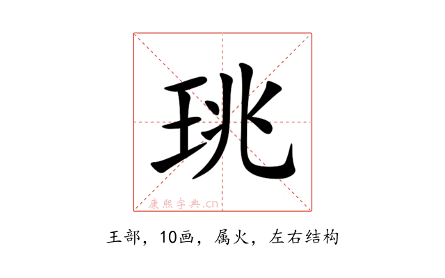 〔珧〕字是左右结构,可拆字为“王、兆”或“⺩、兆”,五行属火。