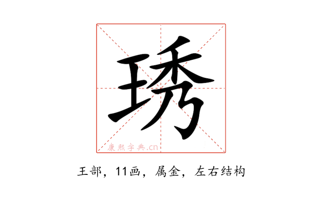 〔琇〕字是左右结构,可拆字为“王、秀”或“⺩、秀”,五行属金。