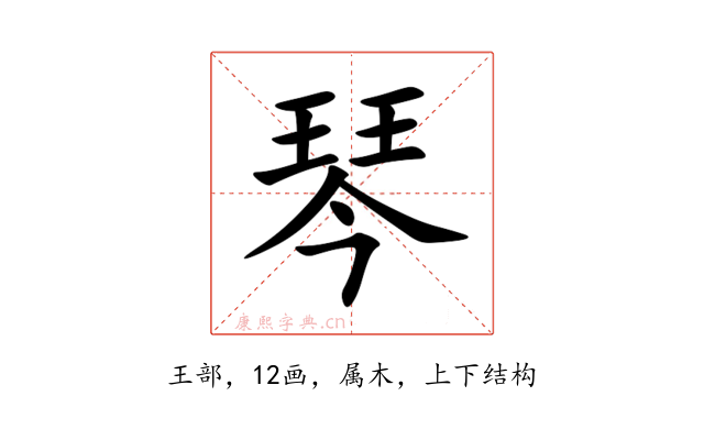 纠错〔琴〕字拼音是(qín),部首是王部,总笔画是12画。