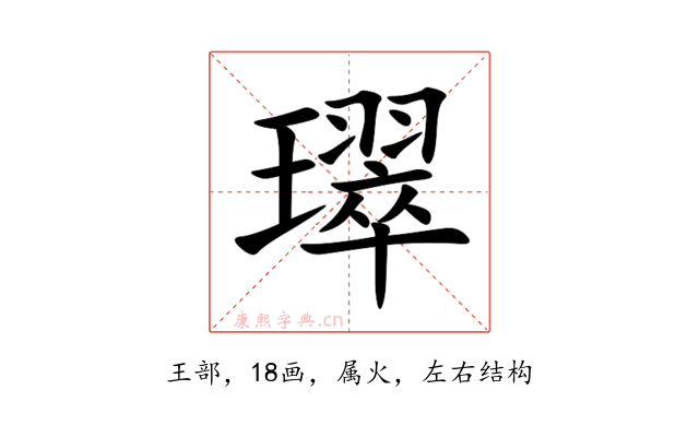 〔璻〕字是左右结构,可拆字为“王、翠”或“⺩、翠”。