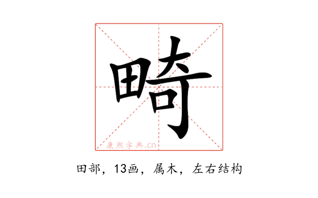〔畸〕字是左右结构,可拆字为“田、奇”,五行属木。