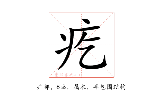 疒部 共8画 半包围结构 U+7599 CJK 基本汉字