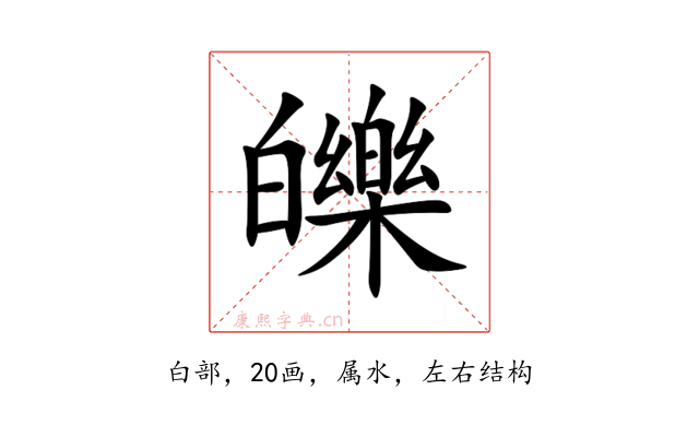 〔皪〕字是左右结构,可拆字为“白、樂”。