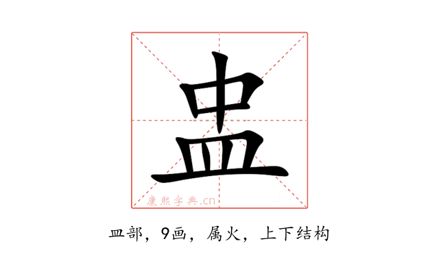 皿部 共9画 上下结构 U+76C5 CJK 基本汉字