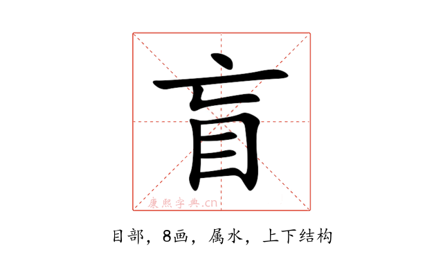 〔盲〕字是上下结构,可拆字为“亡、目”,五行属水。