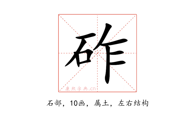 〔砟〕字是左右结构,可拆字为“石、乍”,五行属土。