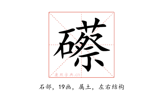 〔礤〕字是左右结构,可拆字为“石、蔡”,五行属土。