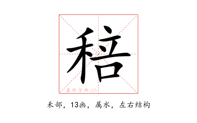 〔稖〕字是左右结构,可拆字为“禾、咅”,五行属水。