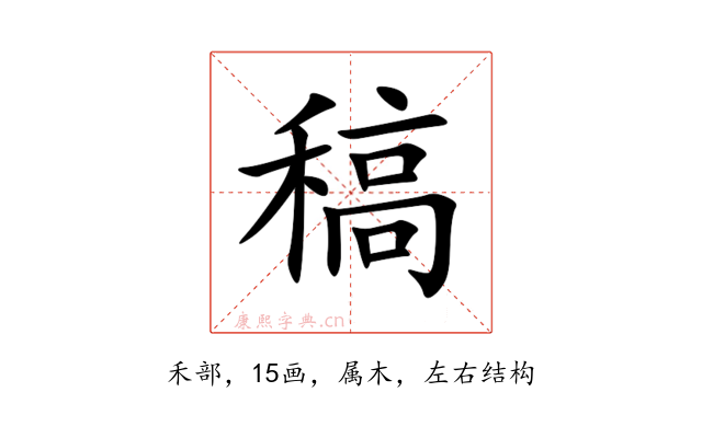 纠错〔稿〕字拼音是(gǎo),部首是禾部,总笔画是15画。