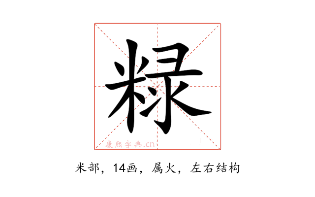 〔粶〕字是左右结构,可拆字为“米、录”或“米、彔”。