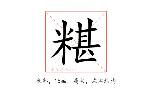 〔糂〕字是左右结构,可拆字为“米、甚”。