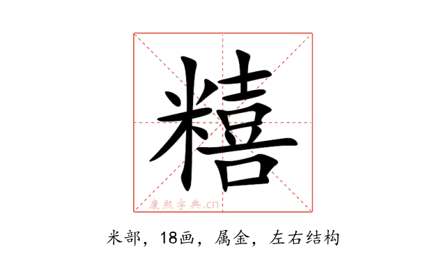 〔糦〕字是左右结构,可拆字为“米、喜”。
