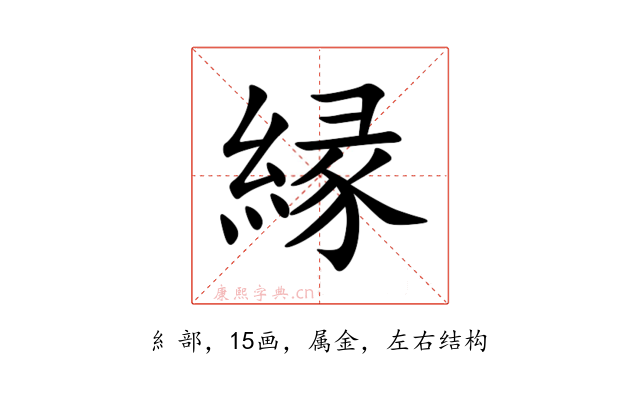〔縁〕字是左右结构,可拆字为“糸、彖”。