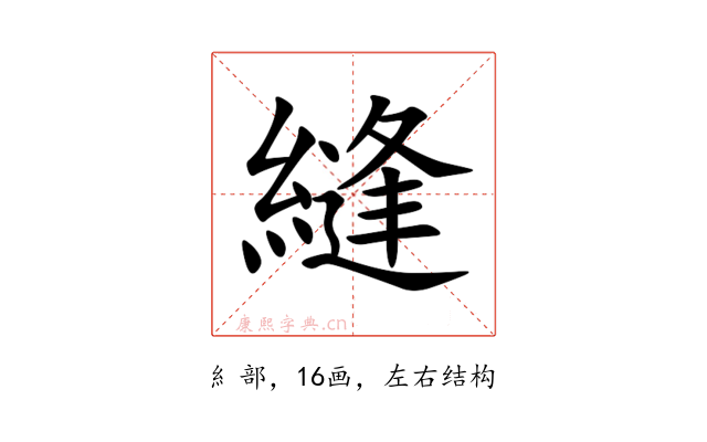 〔縫〕字是左右结构,可拆字为“糸、逢”或“糹、逢”。