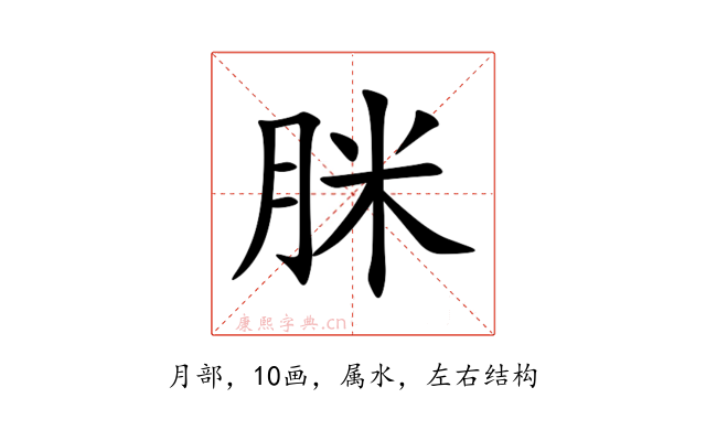 〔脒〕字是左右结构,可拆字为“月、米”,五行属水。