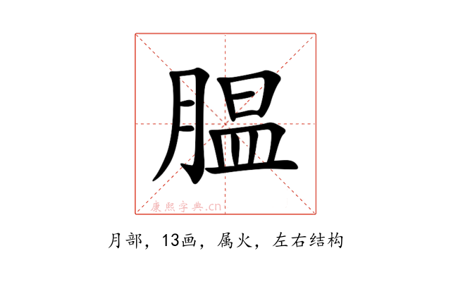〔腽〕字是左右结构,可拆字为“月、昷”或“⺼、昷”,五行属火。