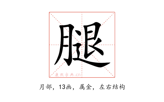 〔腿〕字是左右结构,可拆字为“月、退”或“、退”,五行属金。