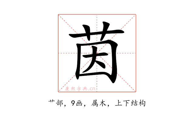 〔茵〕字是上下结构,可拆字为“艹、因”,五行属木。