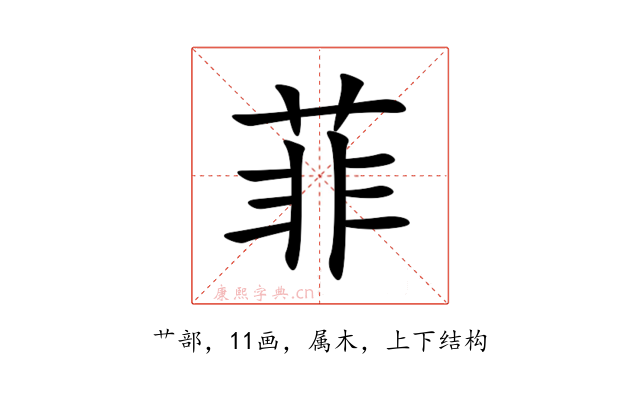 〔菲〕字是上下结构,可拆字为“艹、非”,五行属木。