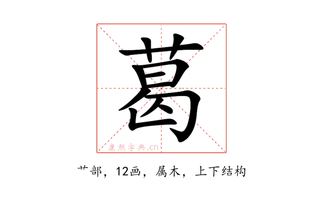 〔葛〕字是上下结构,可拆字为“艹、曷”,五行属木。