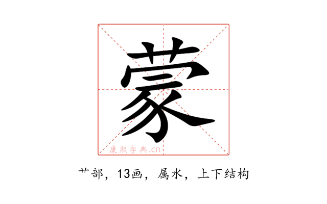 〔蒙〕字是上下结构,可拆字为“艹、冡”,五行属水。