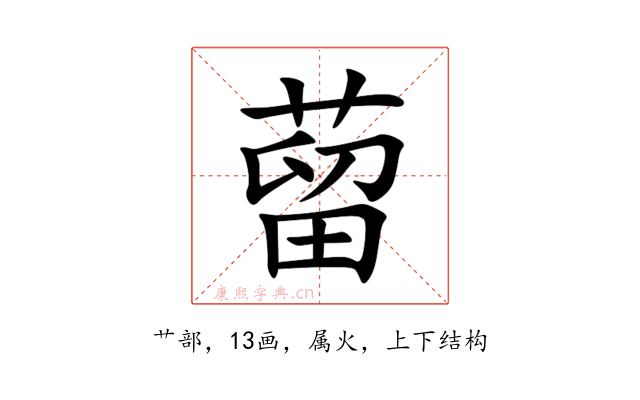 〔蒥〕字是上下结构,可拆字为“艹、留”。