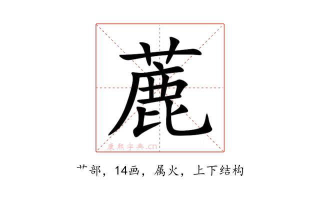 〔蔍〕字是上下结构,可拆字为“艹、鹿”。