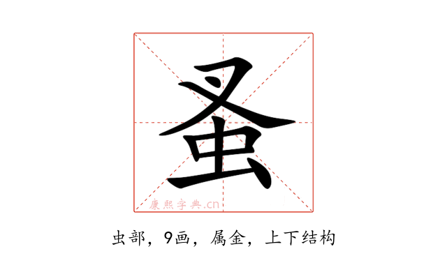 〔蚤〕字是上下结构,可拆字为“叉、虫”或“㕚、虫”,五行属金。