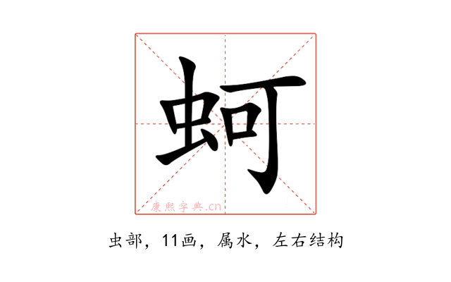 纠错〔蚵〕字拼音是(kē),部首是虫部,总笔画是11画。