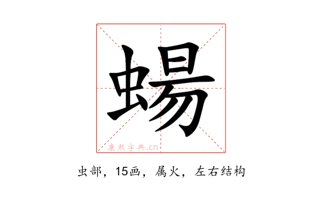 〔蝪〕字是左右结构,可拆字为“虫、昜”,五行属-。