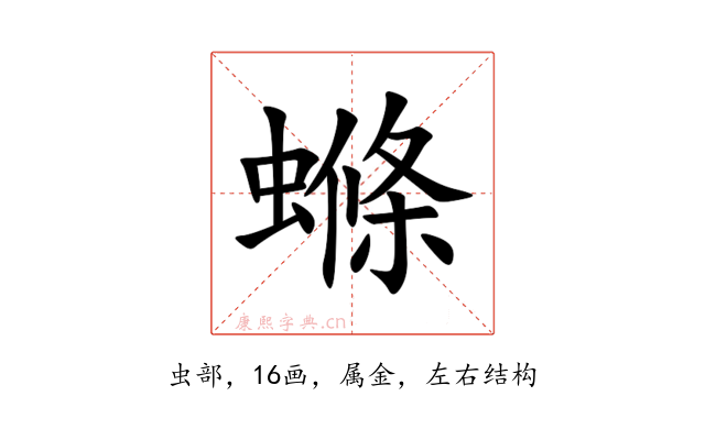〔螩〕字是左右结构,可拆字为“虫、條”。