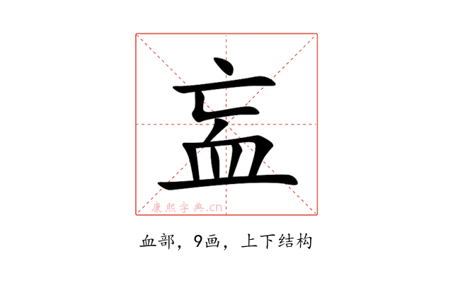 〔衁〕字是上下结构,可拆字为“亡、血”。