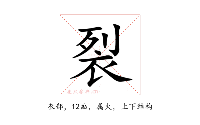 〔裂〕字是上下结构,可拆字为“列、衣”,五行属火。