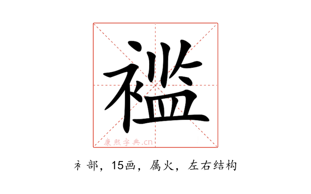 〔褴〕字是左右结构,可拆字为“衤、监”,五行属火。