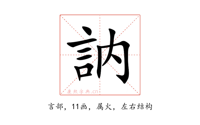 〔訥〕字是左右结构,可拆字为“言、内”或“訁、內”。