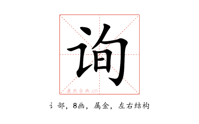 〔询〕字是左右结构,可拆字为“讠、旬”,五行属金。