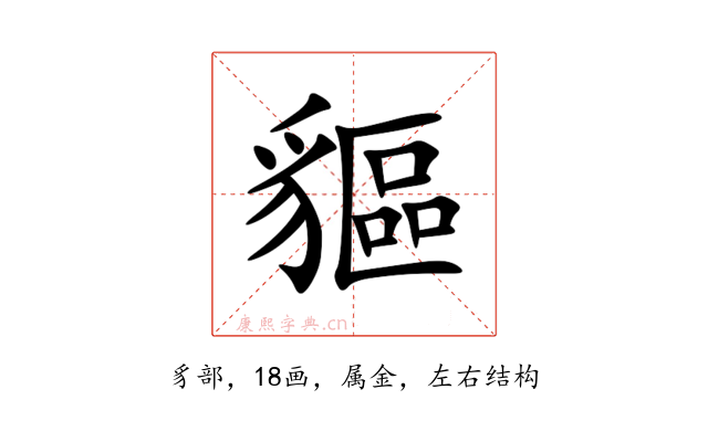 〔貙〕字是左右结构,可拆字为“豸、區”。