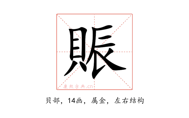 〔賑〕字是左右结构,可拆字为“貝、辰”。