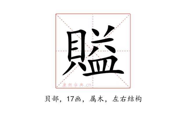 〔賹〕字是左右结构,可拆字为“貝、益”。