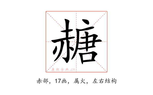 〔赯〕字是左右结构,可拆字为“赤、唐”。