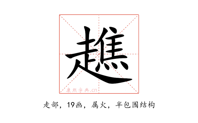 〔趭〕字是半包围结构,可拆字为“走、焦”。