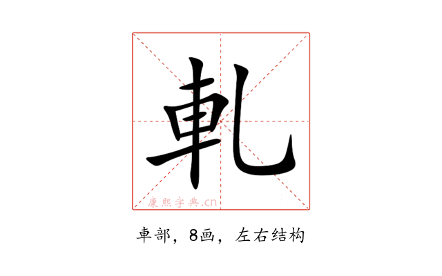 〔軋〕字是左右结构,可拆字为“車、乚”。