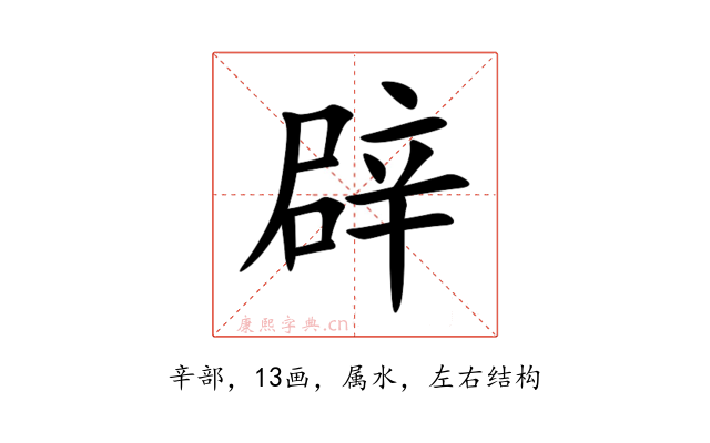 〔辟〕字是左右结构,可拆字为“𡰪、辛”,五行属水。