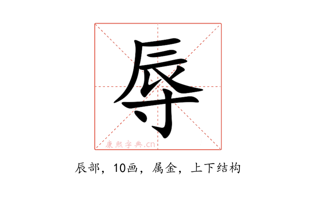 〔辱〕字是上下结构,可拆字为“辰、寸”,五行属金。